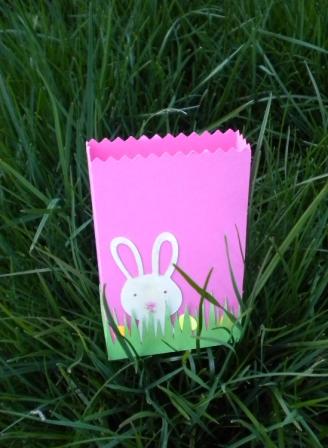 | Cut the bunny and basket: measure the finished height of the bag, and cut 1/2" or so smaller. |